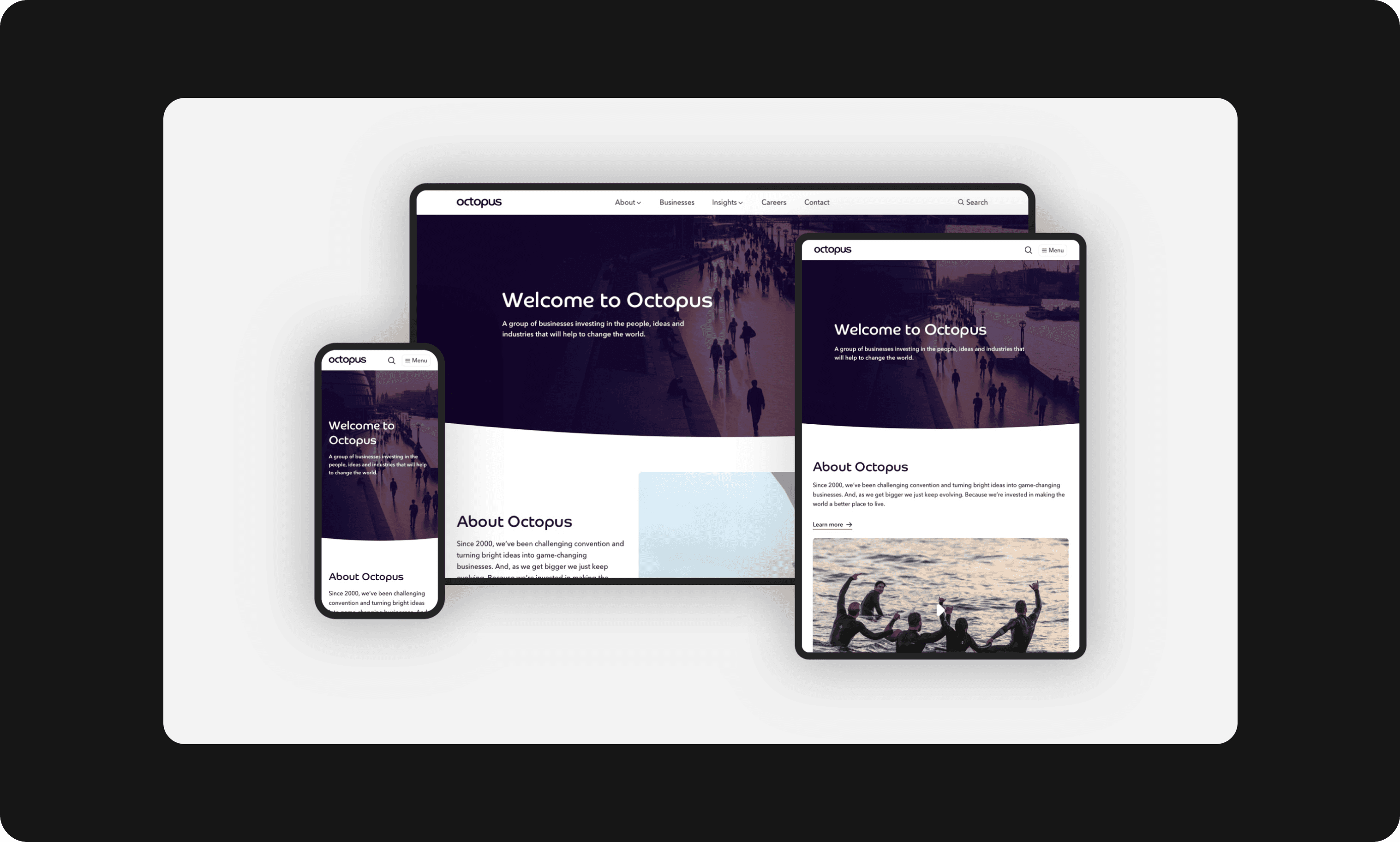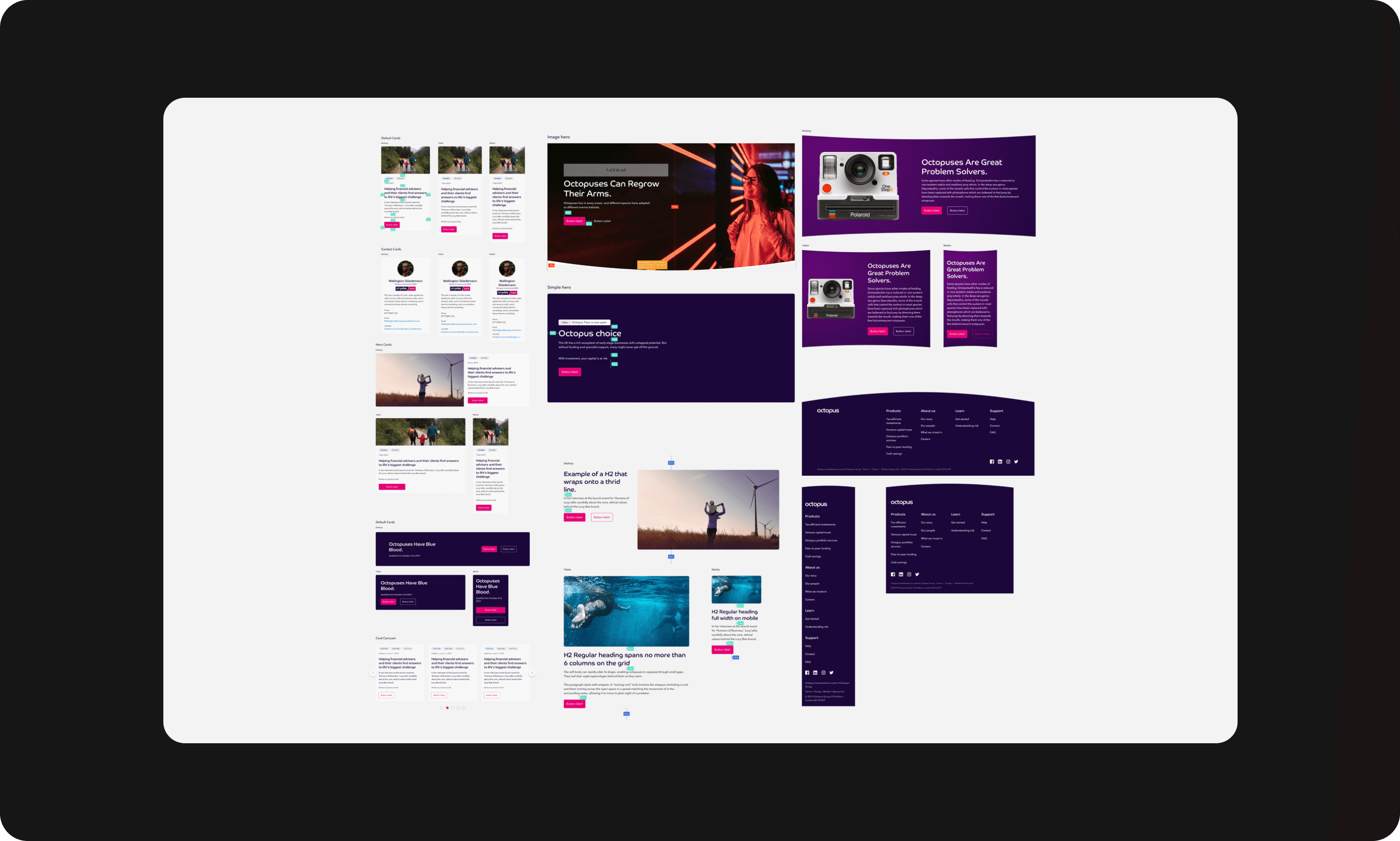 Larger patterns such as hero blocks and page breaks helped structure long form content. Once established, the system was applied to octopusgroup.com and octopusventures.com to validate real world use.